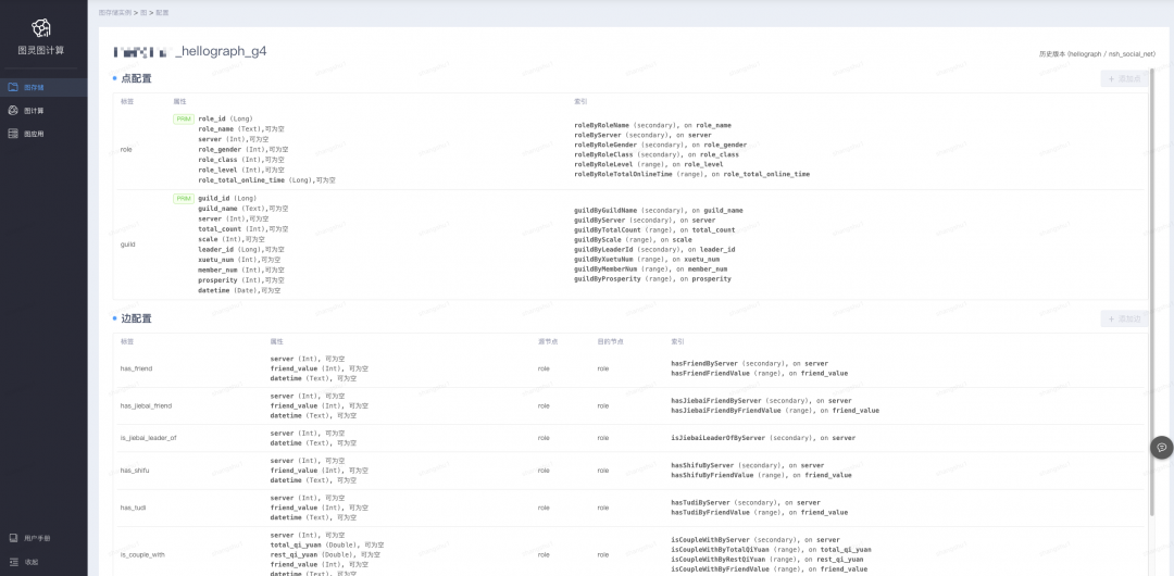 数据建模:数据导入之前首先要进行数据建模,数据建模分为两部分:点建模和边建模。下图是数据建模的界面截图,用户点击添加点/添加边的按钮来创建不同类型的点边标签,每一种点和边都包含一系列的属性,对于属性还可以创建相应的索引,目前支持的索引包括二级索引、范围索引和全文检索。
