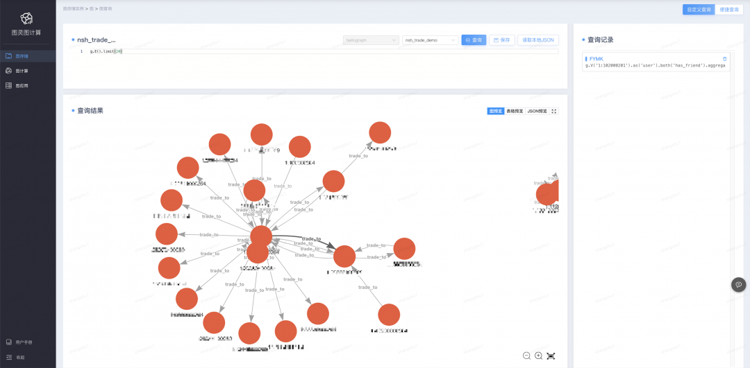 在图数据应用中,业务同学经常需要通过可视化探索的方式来查询图数据来验证查询和实验的合理性,这种场景有点类似于OLAP中的ad-hoc查询。例如,在异常交易检测场景中,经常需要检测多层级交易薅羊毛的行为,这种交易通过是从一批节点出发,通过若干中间玩家,最终汇集到金主号;又例如,玩家a通过中间玩家b,将银两转移给同伙玩家c,三个节点之间就形成了一个明显的环路。