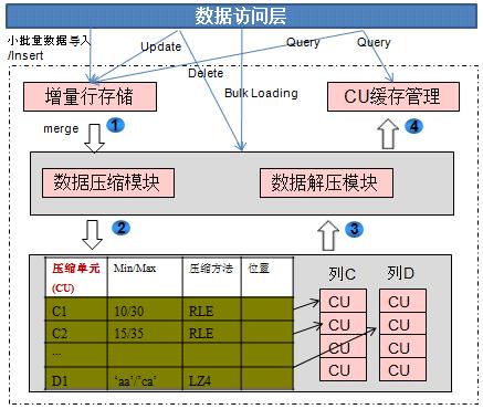 如图2所示,行列混合存储引擎可以同时为用户提供更优的数据压缩比(列存)、更好的索引性能(列存)、更好的点更新和点查询(行存)性能。