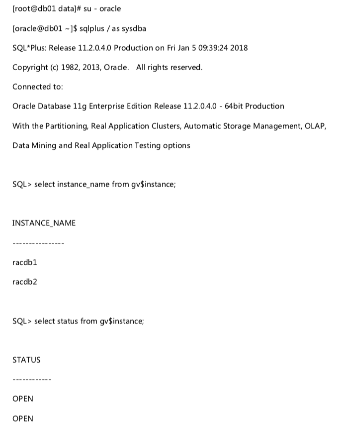 请检查Oracle RAC状态是否正常,若目标库为单实例可忽略此步骤。在grid用户下,用crs_stat –t 命令查看RAC状态,除gsd服务是offline,其余状态均为online则正常。