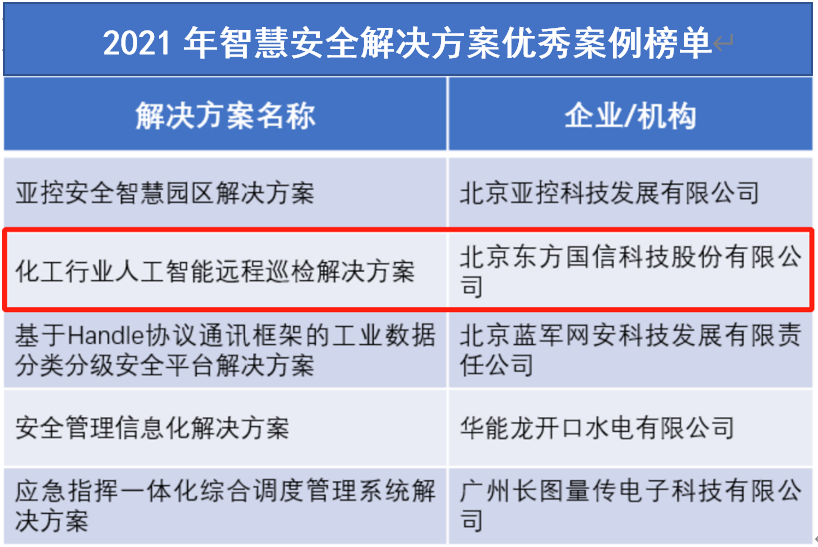 近日,中电标协工业互联网平台生态工作委员会、中国产业互联网发展联盟、国家工业信息安全发展研究中心、中国科学院大学应急管理科学与工程学院联合公布了2021年智慧安全解决方案优秀案例名单。东方国信“化工行业人工智能远程巡检解决方案”成功入选。化工企业的第一要务是确保生产安全,厂区内球罐、储罐等容器存储的介质通常存在一定的毒性,且具有易燃、易爆等特性,各类容器等设备是化工企业安全监测的重点之一。根据行业要求,部分容器除设置远传仪表外还设置有就地仪表,就地仪表靠人工定期巡检查看以反应容器内的压力、温度等参数是否正常,但人工定期巡检无法做到实时检测,人工巡检过程还存在一定的危险性。