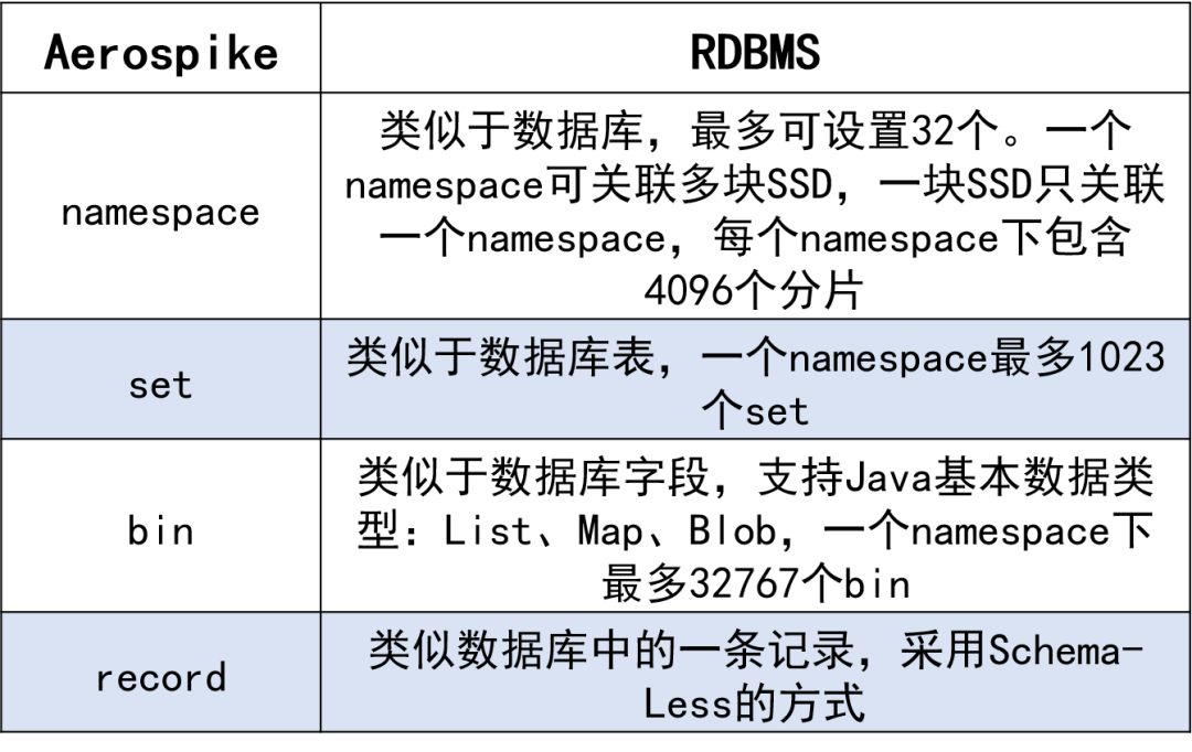 Aerospike采用无模式存储,数据模型类似RDBMS,因而开发者们在理解与使用上会感到相对亲切:
