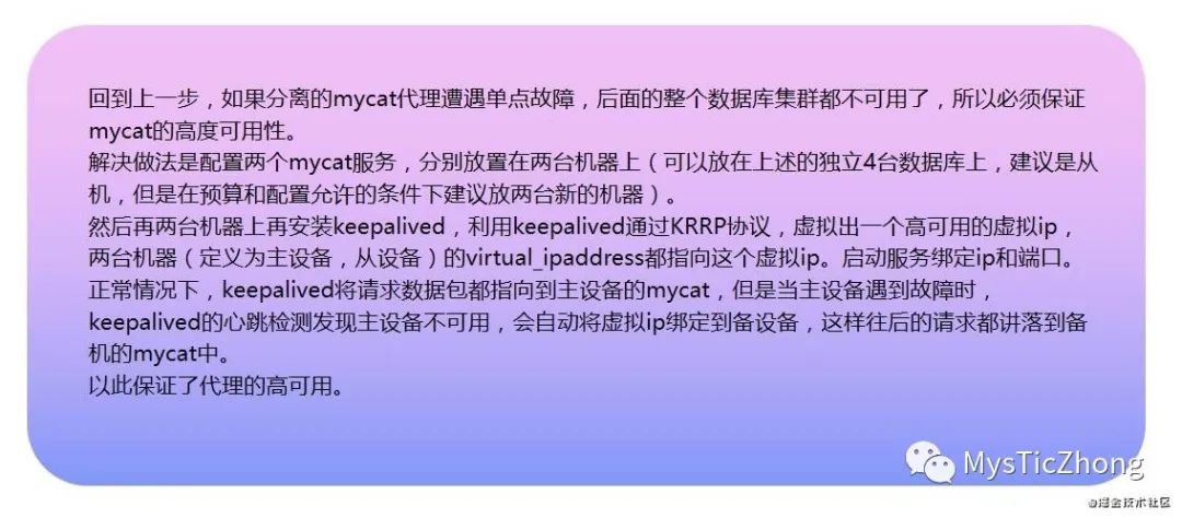 最后提一下,这个数据库集群方案虽然最后配置出来并上线生产,而且运行了一段时间发现无重大问题。但是毕竟是用在一个新项目上,用户量访问量等都不多,瞬时并发场景比较少。所以不敢说此方案是真正意义的高可用,只能说是一个可尝试级别的实践性方案吧。