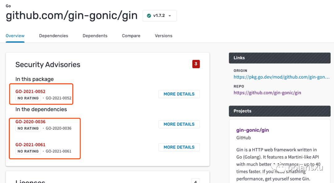 赶紧看看你在使用的开源项目有无安全漏洞,会不会有安全隐患。比如 Gin 项目就有安全漏洞: