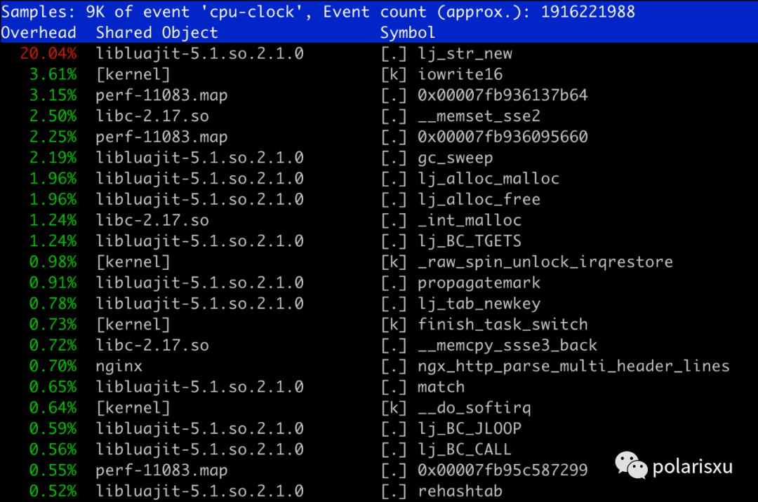 对某个 nginx 进程执行 perf top
