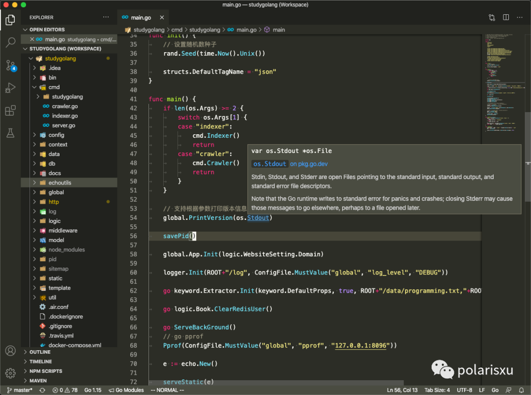 讲了这么多,VSCode 打造为 Go 的开发环境,你还满意吗?看看我的 VSCode 界面: