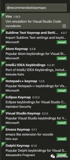 VSCode 支持设置各种快捷键,一般建议用默认的。但为了方便从其他编辑器转过来的用户,VSCode 提供了快捷键绑定扩展,可以方便使用你熟悉的编辑器快捷键。