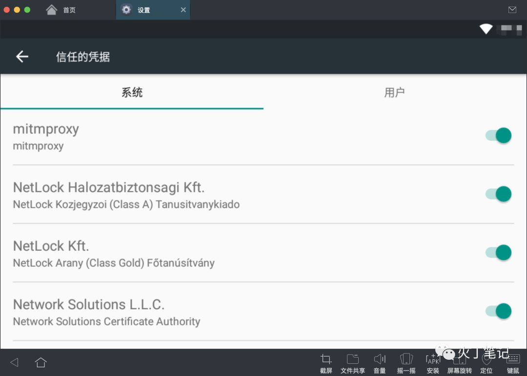 最后在模拟器「设置 安全 信任的凭据 系统」里就能看到 Mitmproxy 证书了: