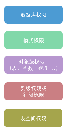 对象权限是指在数据库、模式、表、视图、函数等数据库对象上执行特殊动作的权限,不同的对象类型与不同的权限相关联,比如数据库的连接权限,表的查看、更新、插入等权限,函数的执行权限等。基于特定的对象来描述对象权限才是有意义的。