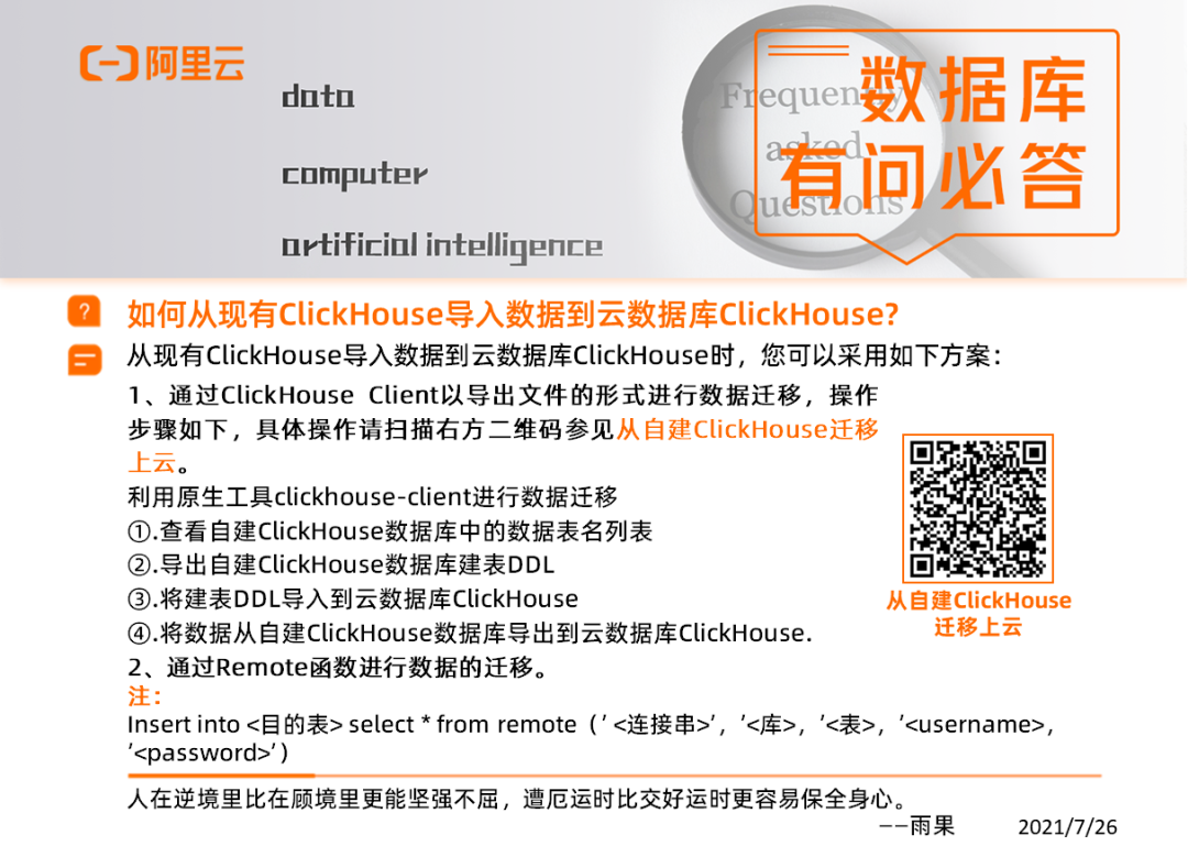 Q: 如何从现有ClickHouse导入数据到云数据库ClickHouse?