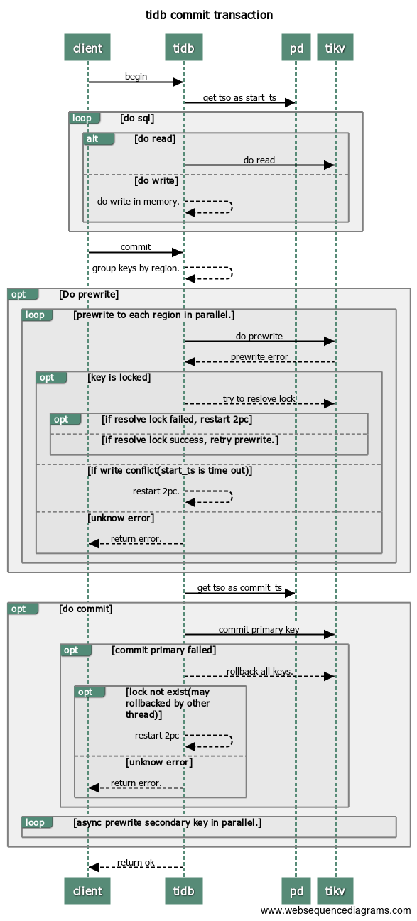 不过这个哥们也说了:在Postgres中使用基于RocksDB的想法很有用。但是这种方式违反了Postgres的ACID属性。没有原子性和一致性(RocksDB 原则上支持2PC,但这里没有使用)。说到这里,其实可以看看TiDB是怎么实现的,TiDB的底层存储引擎也是RocksDB,以下来图片自于TiDB。