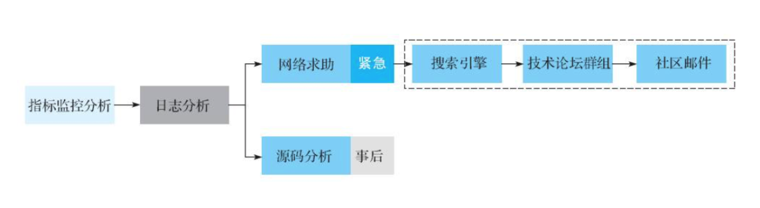 网络求助。经过监控指标分析和日志分析后,运维人员通常都会有收获。也有部分情况下,我们能看到了"Exception",但不明白具体含义。此时需要去网络上求助。首先在搜索引擎上根据相关日志查找,大多数情况下都能找到相关的文章说明,因为你遇到的问题很大概率别人也会遇到。如果没有线索,接着去各个专业论坛查找请教,比如stackoverflow、hbase-help.com以及各种HBase相关交流群组。最后,还可以发邮件到社区请教社区技术人员。