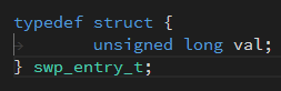 slot中,同时会修改pte内容为slot对应的swp_entry_t。swp_entry_t是一个64位的变量,其结构如下图所示,其中2-7位存放swap分区的type,8-57位存放slot在分区内的offset。内存换入时,通过pte的内容即可在磁盘上找到对应的slot。