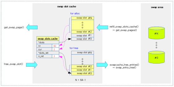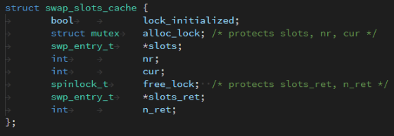 swap slot的分配速度,内核引入了swap slot cache机制。该机制定义了一个per_cpu的buffer,包含alloc和free两部分cache,分别用于分配和释放。
