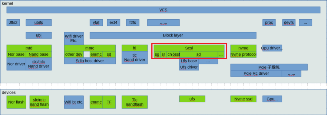 接下来会基于linux设备驱动模型描述scsi子系统的框图。看到这里的小伙伴接下来需要有linux设备驱动模型的基础知识背景了。