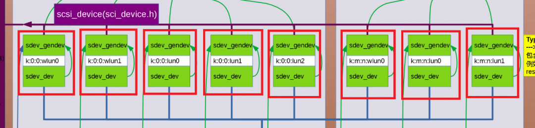 Scsi子系统针对每个lun创建了两个device对象,分别是sdev_gendev和sdev_dev。