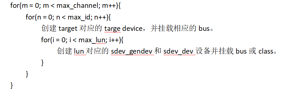 在scsi内部针对每个target创建了一个名字为“targetk:m:n”的device结构体,其中k是host编号,m是channel编号,n是id编号。