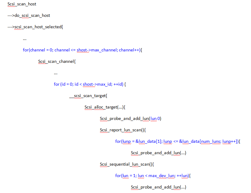 以host为单位进行scan。它会把host对应的device下面所有的target和lun全扫描出来。
