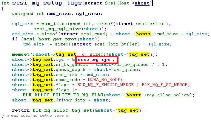 通过blk_mq_alloc_tag_set注册一个blk_mq_tag_set。注册时我们要提供一堆钩子函数给通用块设备层,处理block发下来的request请求。