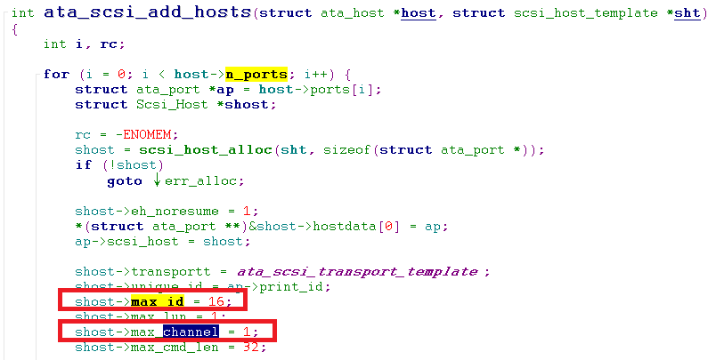 注意channel编号和id编号是底层驱动自行管理的,而host编号(也就是前k)则是linux scsi子系统自行管理(参看static DEFINE_IDA(host_index_ida)(drivers/scsi/host.c))
