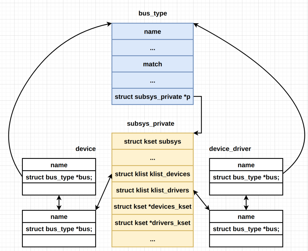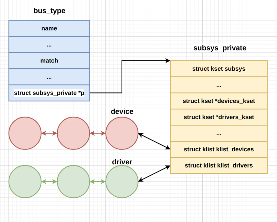 bus 是 Linux 设备驱动模型这种建筑的核心框架,系统中的设备和驱动都依附在其周围。