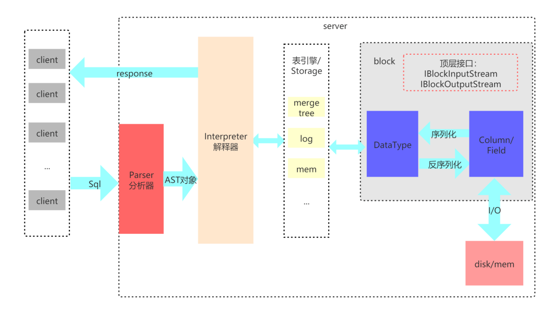 ClickHouse从OLAP场景需求出发,定制开发了一套全新的高效列式存储引擎,并且实现了数据有序存储、主键索引、稀疏索引、数据Sharding、数据Partitioning、TTL、主备复制等丰富功能。以上功能共同为ClickHouse极速的分析性能奠定了基础。