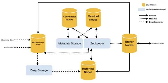 Druid支持 PB 级数据、千亿级事件快速处理,支持每秒数千查询并发