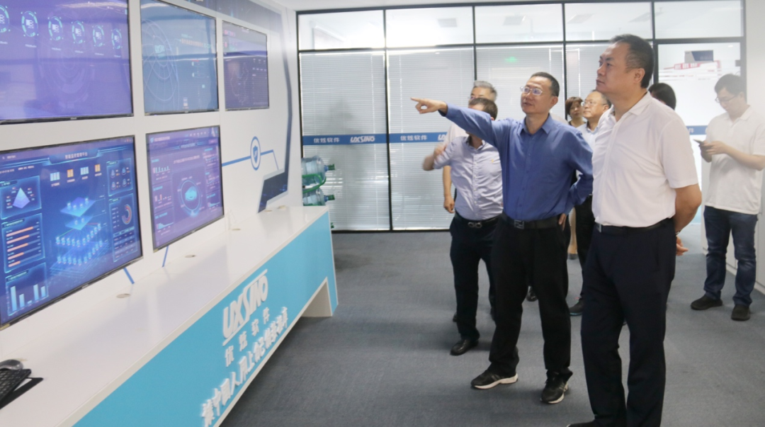 潘锋一行首先参观了优炫软件办公环境、核心产品和金融、电力等行业项目的大屏演示效果,听取了逯瑶有关公司发展历程、技术路线、人才战略、战略布局、社会责任等方面的情况介绍,充分肯定了优炫软件取得的发展成果。