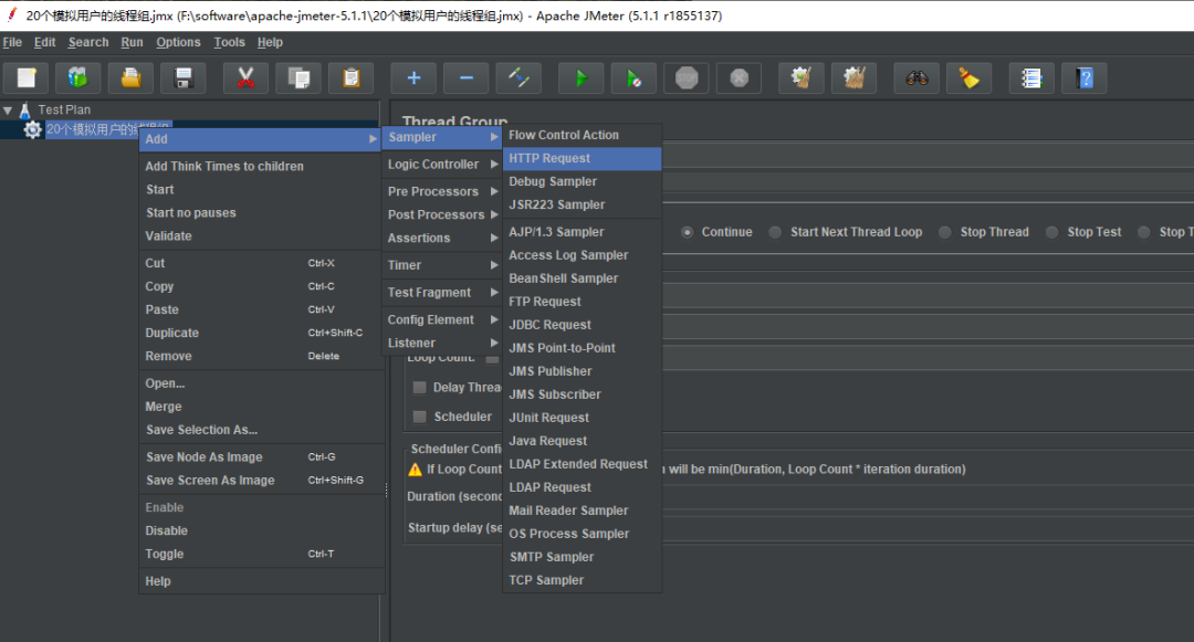 在线程组上右键,选择添加 Http 请求的取样器
