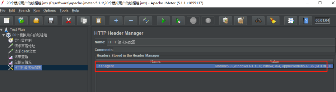 对于某些请求,有可能我们需要设置请求的请求头的信息,例如:浏览器类型,鉴权信息 token 等,这时候,我们可以通过添加 http 请求头的配置元件来完成。
