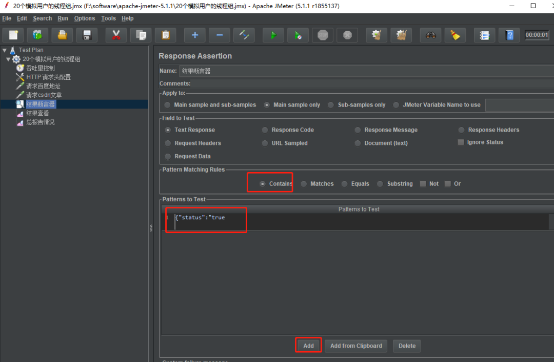{"status":"true我们则判断该请求成功,否则失败,我们可以这样来设置断言。