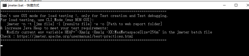 一般而已如果需要进行很高的QPS 的性能测试,不要使用界面来测试,配置完成后,保存jmx 文件之后,再使用命令行来测试会更好,因为界面运行的话,会占用很大资源,实际发送的请求可能得不到自己想要的QPS。界面运行命令,启动 jmeter 的时候就有提示。