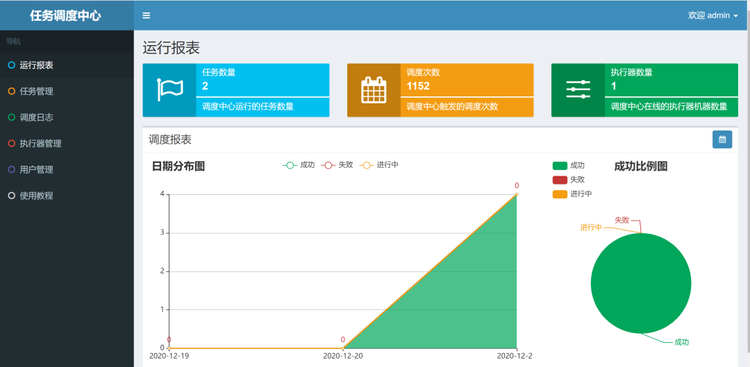输入默认的账号和密码, “admin/123456”,登录即可看到调度中心。(需要将127.0.0.1 换成自己的机器的ip)