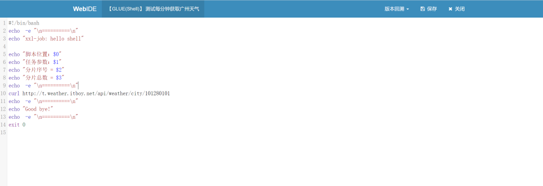 我们可以通过xxl-job 自带的 IDE 来编辑我们需要运行的shell脚本。