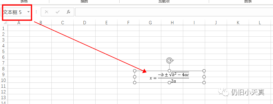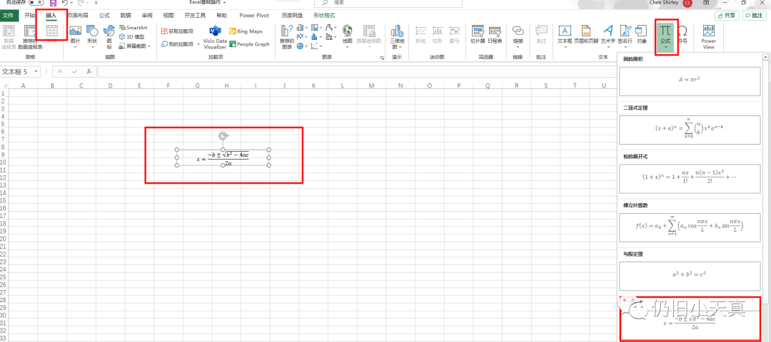 注意,插入的公式,属性是文本框哦,而且是处在被编辑状态~~
