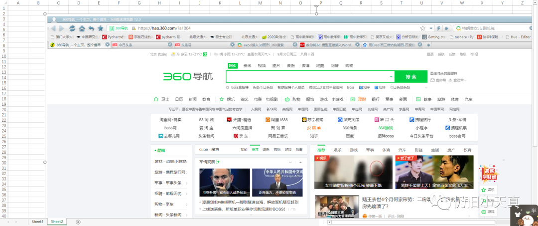 我从目前打开的浏览器、钉钉聊天界面等,能够直接从Excel界面截取并贴进来的图中,引入了360浏览器截图,结果如下:
