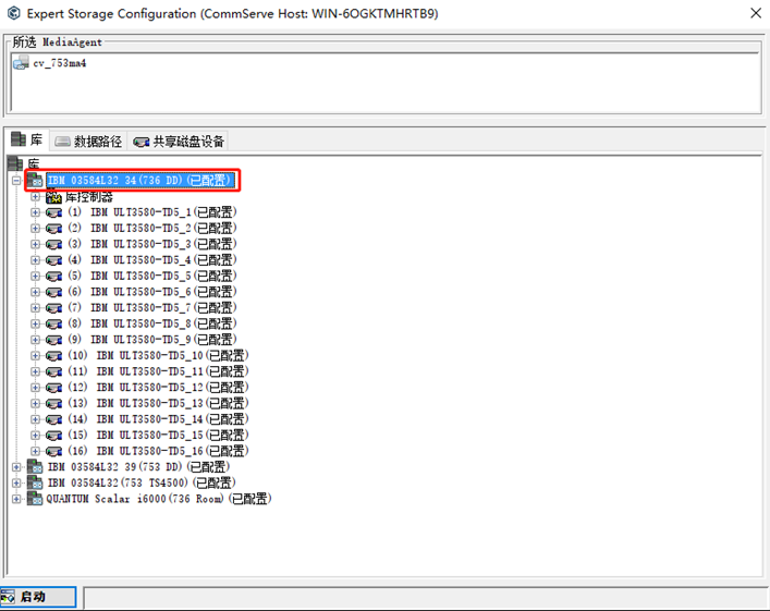 MediaAgent成功连接完DD虚拟带库后,登录MediaAgent使用CV备份软件自带的工具ScanSCSITool,能够验证是否可以扫描到对应的设备文件,剩下步骤与配置物理带库无异,配置完成会在CommCell控制台的Expert storage configuration中,显示库名称,状态是已配置。如下图:
