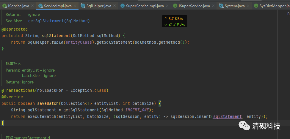 我们先来看看mybatis-plus的批量保存方法是怎么实现的