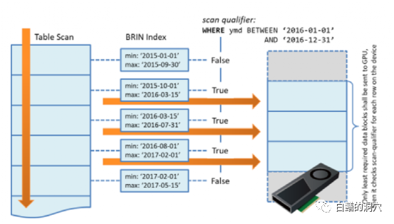 如果某个键值是按照规律增长的,比如时序数据,那么使用BRIN将会十分有效。BRIN中存储了某个PAGE中的键值的最小值与最大值。如果键值存在某种单边增长的趋势,那么创建BRIN索引后,根据这个键值做范围扫描的时候,可以根据BRIN索引找到所需要扫描的数据块,跳过其他的所有数据块,快速的将所需的数据扫描出来。BRIN 在索引数据自然倾向于在表的页中分组或排序的情况,并且数据量十分巨大的情况下很有用。
