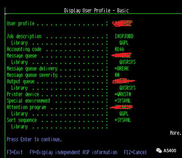 ,想知道当前账号是什么jobd,可以用DSPUSRPRF翻到末尾,找到自己账户下的默认Jobd,这个东西是admin帮你create账号时候默认设置的。