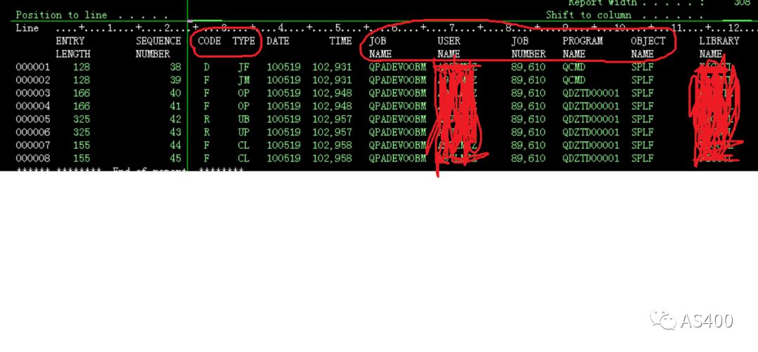 最最关键的,最后一个字段specific data,会存放before after image.某些关键时候的救火就指望这个了。划重点:DSPJRN OUTPUT(*) 和OUTPUT(*OUTFILE) 看到的不太一样,type1显示的内容又点意外呢,可以试试用以下command: