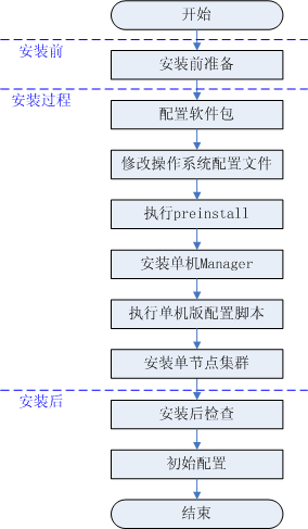 本产品还为您提供手动编写配置文件的安装方法,在“安装过程”的“集群安装”阶段请参考安装过程(手动安装)进行安装。两种安装方式的安装前准备、安装后检查和初始配置阶段的操作是一致的。