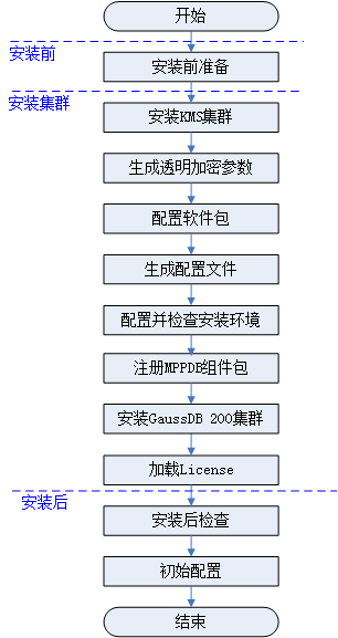 图2 集群安装流程(单AZ高可靠、透明加密方案)
