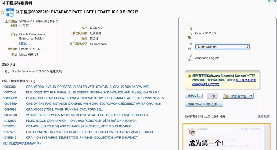 对于 Oracle 10g 的用户,现在终于有了选择,可以不必急着进行大版本的升级了。请 10g 的用户关注这个版本升级。
