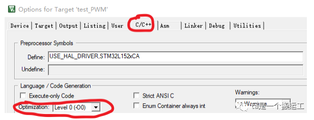 如果在main函数中定义一个变量,调试程序时查看那个变量的值,Watchx(x=1或者x=2)总是显示not in scope。该问题主要是由于编译器优化了我们的程序代码。有两种解决办法,1:把变量定义为一个全局变量,2:将编译器优化等级修改为0。