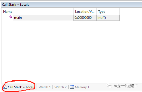 可以设置断点,程序停止断点处时可以查看当前调用栈,一般在keil的右下角,与watchx(x为[1,2])同一栏,如果没有则可以通过菜单栏->View->Call Stack Window调出该窗口。