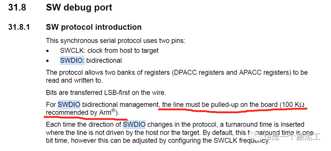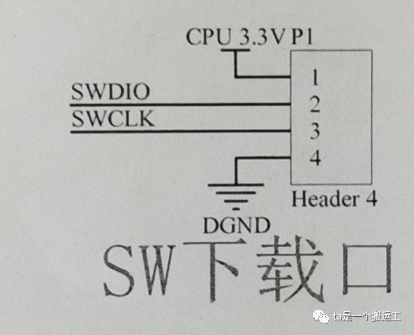 使用4个端口:1-电源,7-SWDIO,9-SWCLK,20-地