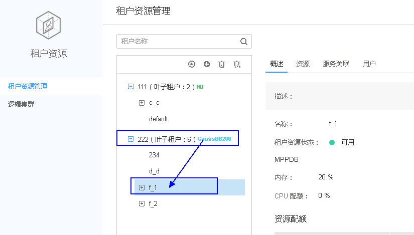 - 自定义子租户:关联服务参数“CPU配额选择”为“自定义”的子租户。
