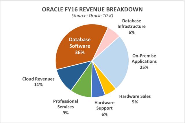 来自数据库软件的收入占Oracle 2016财年总收入的约36%,占其营业利润的约55%。