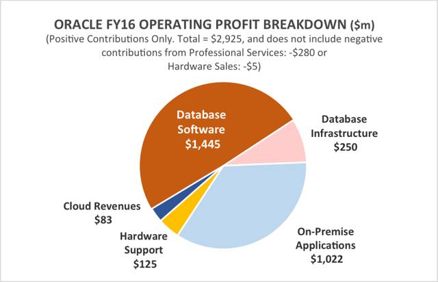 该公司预计的数据库收入下降是明摆着的,此外其内部部署型应用软件的收入也在下降,这块收入占2016财年总收入的约25%,占营业利润的约39%。